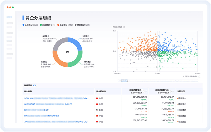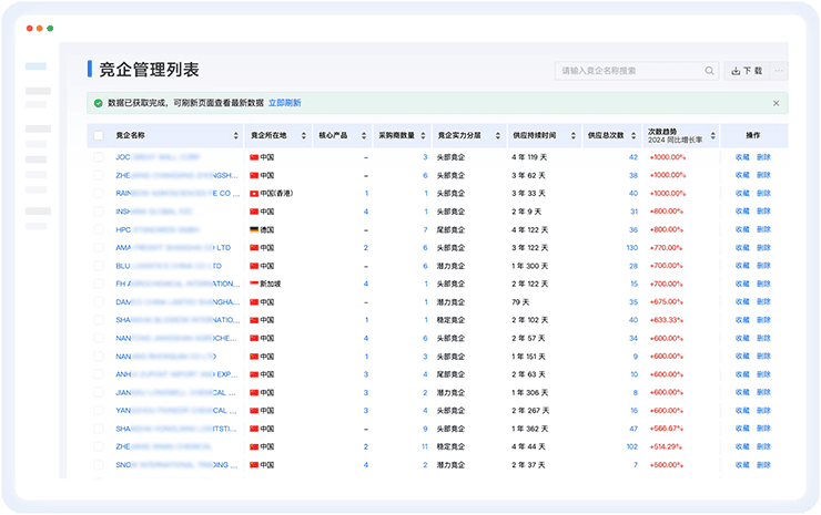 支持多维度筛选与管理;智能分析竞企供应链、量价等;智能监测竞企动态