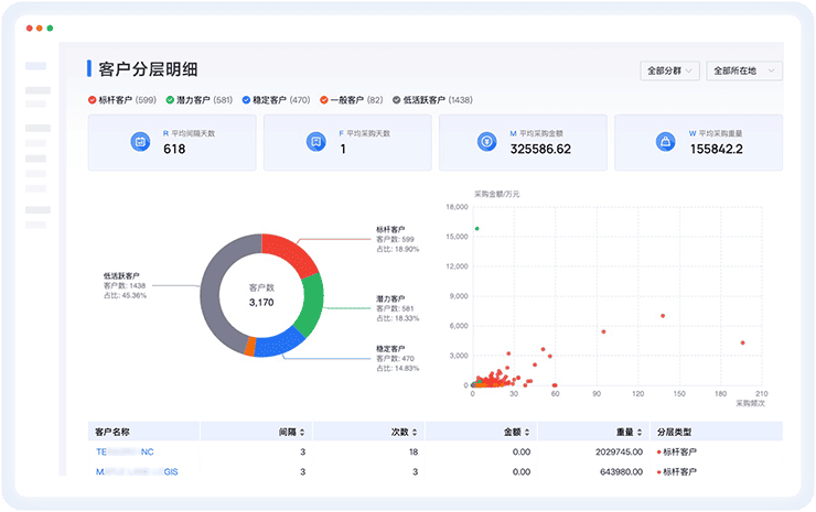 基于筛选、用户分层、客群分析、客户背调等精细化管理