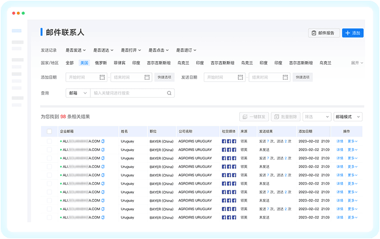 腾博会官网外贸通内置自动发送系统,根据需求智能分析投递线路,抵达率达90%以上;联系人管理、重要度匹配、无效邮箱过滤等功能,触达、跟进更高效